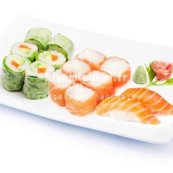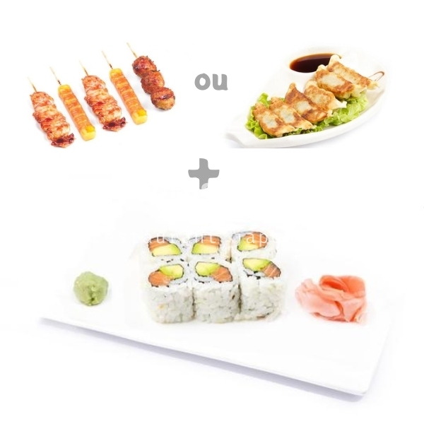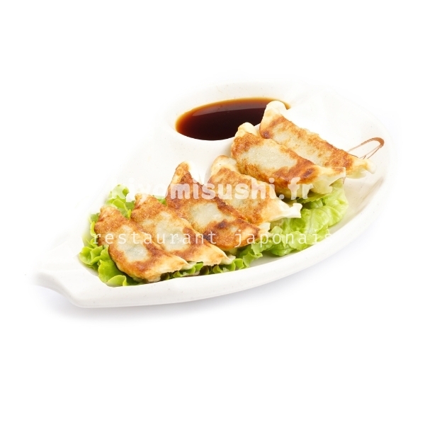 Gyoza poké bowl: Gyoza, Salade, Poisson sur un bol de riz vinaigré